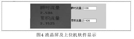 該程序主要用于實(shí)時(shí)更新流量信息,微處理器與上位機(jī)通過(guò)RS232接口以modbus協(xié)議進(jìn)行通信。*后,該設(shè)計(jì)液晶屏上所顯示的流量信息與上位機(jī)軟件所顯示的數(shù)據(jù)如圖4所示。