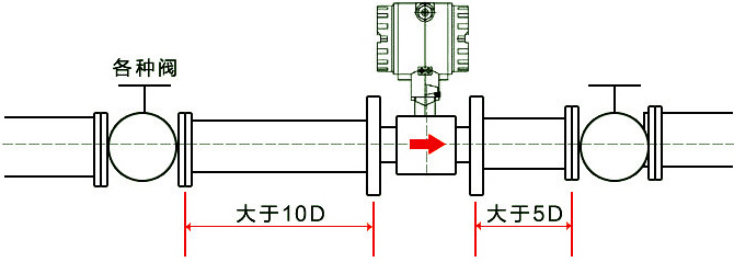 1、安裝時(shí)液體流動(dòng)方向應(yīng)與傳感器外殼上指示流向的箭頭方向一致,且上游直管段應(yīng)≥20dn,下游直管段應(yīng)≥5dn,其中dn為管道內(nèi)徑。