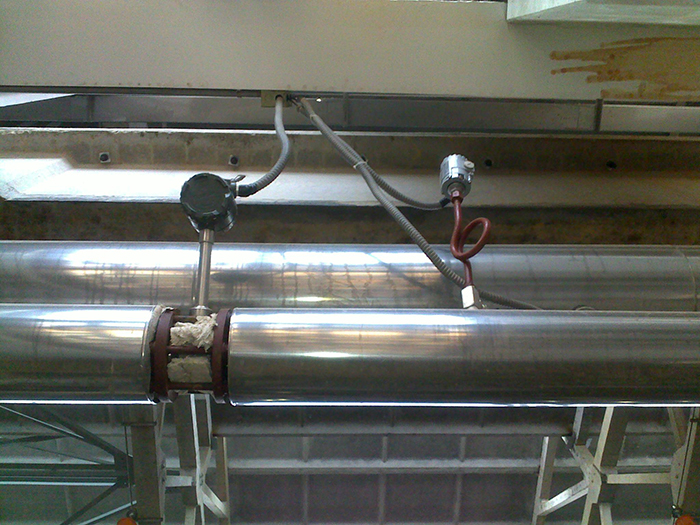 4.渦街流量計應(yīng)盡量避免安裝在振動較強的管道上。若必須安裝,須在其上下游2D處加設(shè)管道緊固裝置,并加防振墊,加強抗振效果。