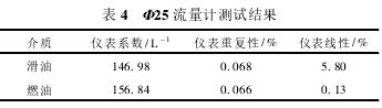 Φ25流量計(jì)測試數(shù)據(jù)如表3所示。
