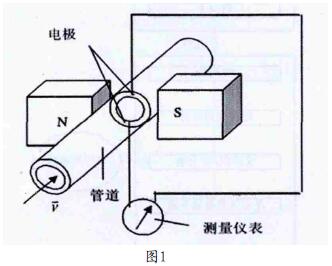 濃硝酸流量計(jì)的設(shè)計(jì)是根據(jù)法拉*電磁感應(yīng)定律,導(dǎo)管中導(dǎo)電的流體被看作導(dǎo)體,管道的內(nèi)徑可看作道導(dǎo)體的長,原理圖如圖1所示,兩電極裝到與管道的中心軸和磁場方向組成的平面相垂直,拾取液體產(chǎn)生的感應(yīng)電動(dòng)勢。感應(yīng)電動(dòng)勢為: