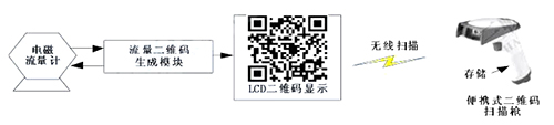 二維碼生成模塊定時向硝酸鈉流量計發(fā)送采集指令,后者收到指令后發(fā)送流量數(shù)據(jù)。