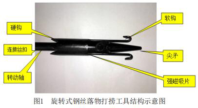 在注水井分層測試工作中鋼絲落物打撈一直是困擾采油測試工的一大難題,據(jù)不完全統(tǒng)計因井下落物而造成作業(yè)重配的注水、注聚井中絕大部分是鋼絲落物造成的,占總落物重配作業(yè)井?dāng)?shù)的50%以上。造成這一現(xiàn)象的主要原因是絲落物不容易被抓牢而且上提打撈到的鋼絲容易形成較大的鋼絲團,堵塞上提通道,造成二次落物,打撈失敗。因此,加工通用的有效的鋼絲落物打撈工具,制定合理的打撈方案是提高打撈鋼絲落物的成功率的關(guān)鍵。