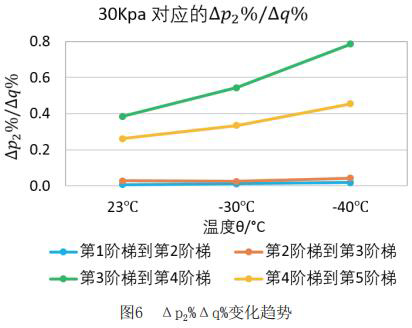 為了更直觀嚴(yán)謹(jǐn)?shù)膶?duì)比每個(gè)階段響應(yīng)速度的不同,對(duì)原始數(shù)據(jù)進(jìn)行處理,得到如下表格2和表格3。將△p2%/△q%作為響應(yīng)速度的直觀量化表達(dá),若△p2%/△q%的值大,說明單位流量變化照成的出口壓力變化大,即說明電磁流量計(jì)響應(yīng)相對(duì)較慢,反之亦然。