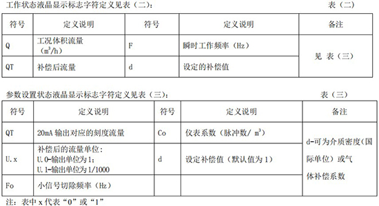 工作狀態(tài)液晶顯示標(biāo)志字符定義見(jiàn)表(二):