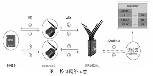 基于 LoRa 技術的無線流量計由控制,計量,通信,電源,存儲五個模塊組成。以污泥回流流量計為主體的計量模塊將采集到的供暖管道數據發(fā)送到通信模塊,基于 LoRa 技術的通信模塊將流量數據存儲并且發(fā)送到由管理人員監(jiān)控的控制模塊,管理人員通過控制模塊和通信模塊向流量計發(fā)送指示。電源模塊是無線流量計的能源中心,可以為流量計的其他模塊提供動力支持。流量計安裝完畢后可在小區(qū)內形成控制網絡,網絡示意圖如圖 1 所示。