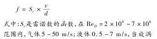 發(fā)生體的形狀和尺寸一定時,S r 可視為常數(shù),渦街頻率與體積流量成比例關系,不受流體物理性質和組份變化的影響。