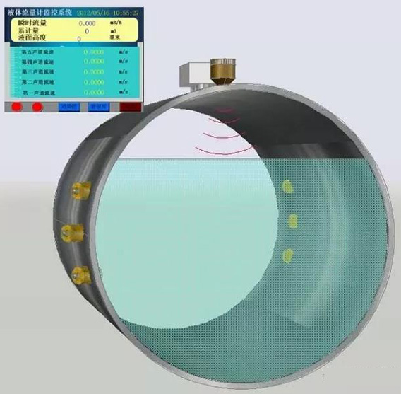 超聲波流量計的工作原理是,借助時差式測量原理,通過一對超聲波探頭發(fā)射信號穿過中間介質(zhì)到達另一側(cè)管壁,被另一個探頭接收到,另一側(cè)探頭同樣發(fā)射信號被*一個探頭接收到。在這個過程中,由于信號的輸送時間受介質(zhì)流速的影響,所以,存在一定的時間差。基于此,超聲波流量計借助相關(guān)公式計算出了相應(yīng)的流量值。