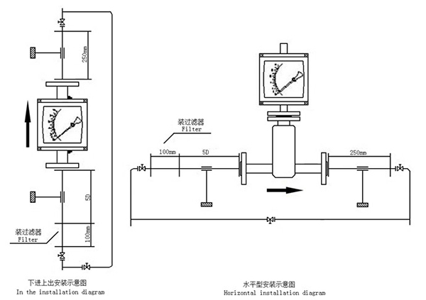 3.金屬浮子流量計(jì)有垂直安裝和水平安裝形式,如果是垂直安裝形式,安裝垂直度應(yīng)該保證優(yōu)于1%,如果是水平安裝形式,安裝水平度都應(yīng)該保證優(yōu)于1%。