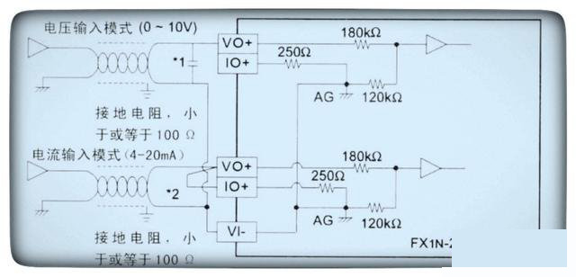 上圖是三菱PLC的一塊模擬量輸入模塊,只有兩種模擬量信號輸入,一路是電壓信號輸入、一路是電流信號輸入模,而且此模塊不能同時用于兩種信號工作。由題目可知現(xiàn)場超聲波液位計輸出的是電流信號,因此將模擬量輸入模塊選擇電流信號輸入模式。由于使用的是電流信號輸入模式,要將圖中所示的VO+和IO+進(jìn)行短接。而VI-是接電壓信號或電流信號的公共端子。